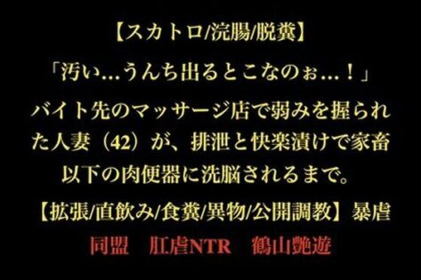 エロ漫画 【最大99%OFF】【スカトロ/浣腸/脱糞】「汚い…うんち出るとこなのぉ…!」バイト先のマッサージ店で弱みを握られた人妻(42)が、排泄と快楽漬けで家畜以下の肉便器に洗脳されるまで。【拡張/直飲み/食糞/異物/公開調教】【暴虐同盟】 2026.01.29 エロ漫画暴虐同盟